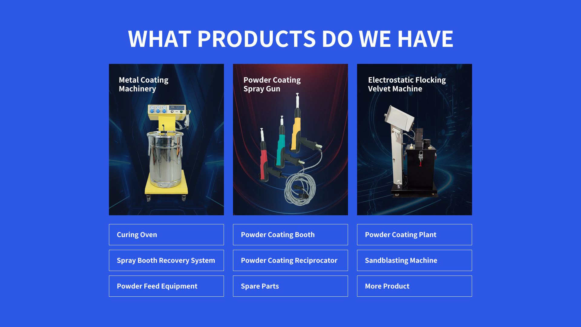 These Powder Coating Machine and Oven systems are essential in automotive manufacturing (car parts, wheels), aerospace (aircraft components), and construction (steel beams). They coat appliances, furniture, and consumer electronics, offering UV-resistant, corrosion-proof finishes.